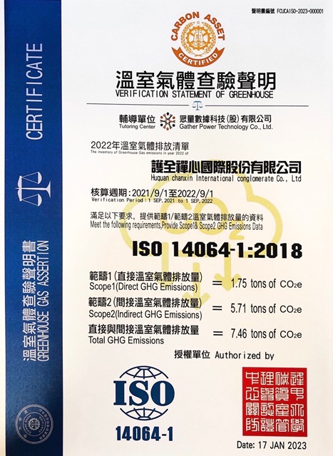 完整原料認證、業界領先導入碳中和與完成碳足跡盤查生產線、 通過ISO22000 、 HACCP認證。