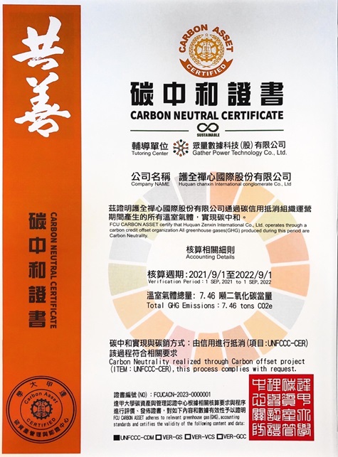 - 積極參與國內外論壇與實證合作,讓護全禪心國際成為臺灣碳中和的代表品牌,躍升國際舞台。